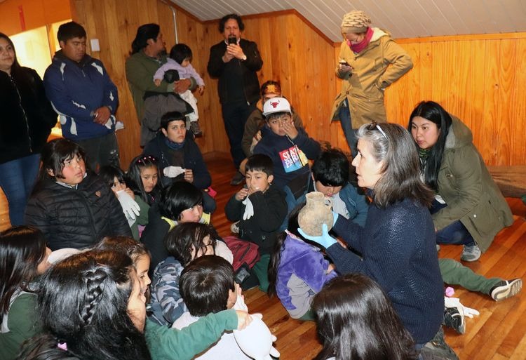 En la visita a los Museos de la Universidad Austral (UACH) en la Isla Teja de Valdivia nos recibieron Leonora Adán Alfaro, Arqueóloga; Marcelo Godoy Gallardo, encargado de Vinculación & Gestión Institucional, Adrián Silva Pino, Encargado de Extensión, Claudia Ordóñez Riveros, encargada de conservación, todos parte de la Dirección Museológica de la Universidad Austral de Valdivia (UACH). Además de estar y compartir en las 3 salas del Museo Histórico y Antropológico Mauricio Van De Maele, los niños y sus padres, todos vecinos de Challupen pudieron tocar y ver de cerca las piezas cerámicas que están en dicha institución y que fueron parte de la vida y del trabajo de sus antepasados. Además se realizó una actividad práctica de indagación en la que jugaron a ser arqueólogos y a comprender de una manera práctica cómo funciona ese sistema de trabajo sistemático que sigue un método que tiene un cierto orden. De esta forma se desarrolla desde esa vereda el estudio del pasado humano y como el suelo guarda historias, primero se saca la capa vegetal y así, poco a poco se va más profundo y van apareciendo restos que los científicos del área, los arqueólogos, van interpretando sucesivamente tanto los que van a terreno, como los que toman sus apuntes y publicaciones para continuar o dar nuevos rumbos a esos conocimientos.